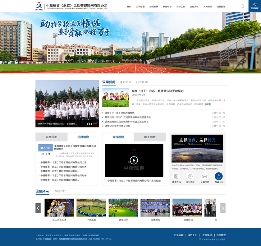 Project Description 中精蕴睿(北京)风险管理顾问有限公司2013年,现有教职工及各科目教育专家80多人,致力于为各中小培训学校(机构) 提供教育相关政策咨询与指引、法律服务、人才引进与培养、师资队伍建设与培训、教学教研与学科创新、市场营销企划、文化 理念塑造与品牌输出的专业化教育管理全方位的综合服务。 Official website address 荆州http://in-re.com/ I want to share